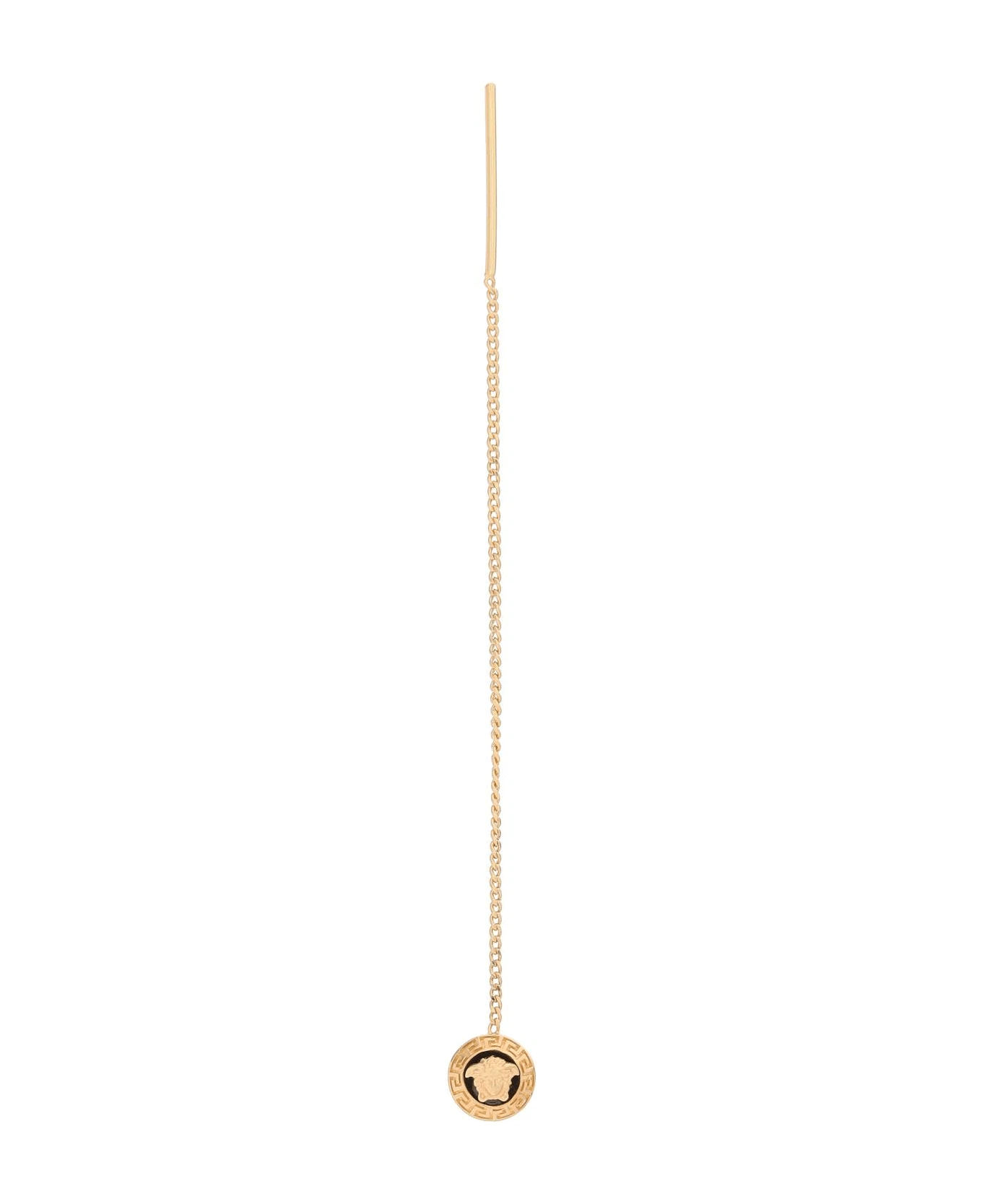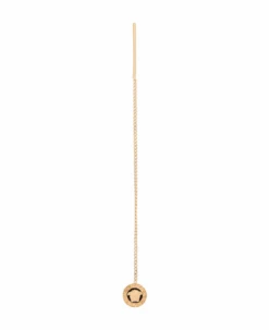 Gold-plated metal pendant earrings by Versace with iconic Medusa head. For pierced lobes.