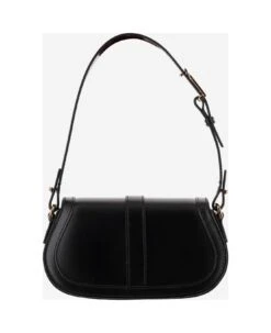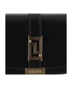 Bag made of smooth leather Metal elements with Greca Adjustable and removable leather shoulder strap Magnetic snap button closure Folding flap Interior compartment Interior pouch Black Made in Italy Composition: 100% calfskin leather