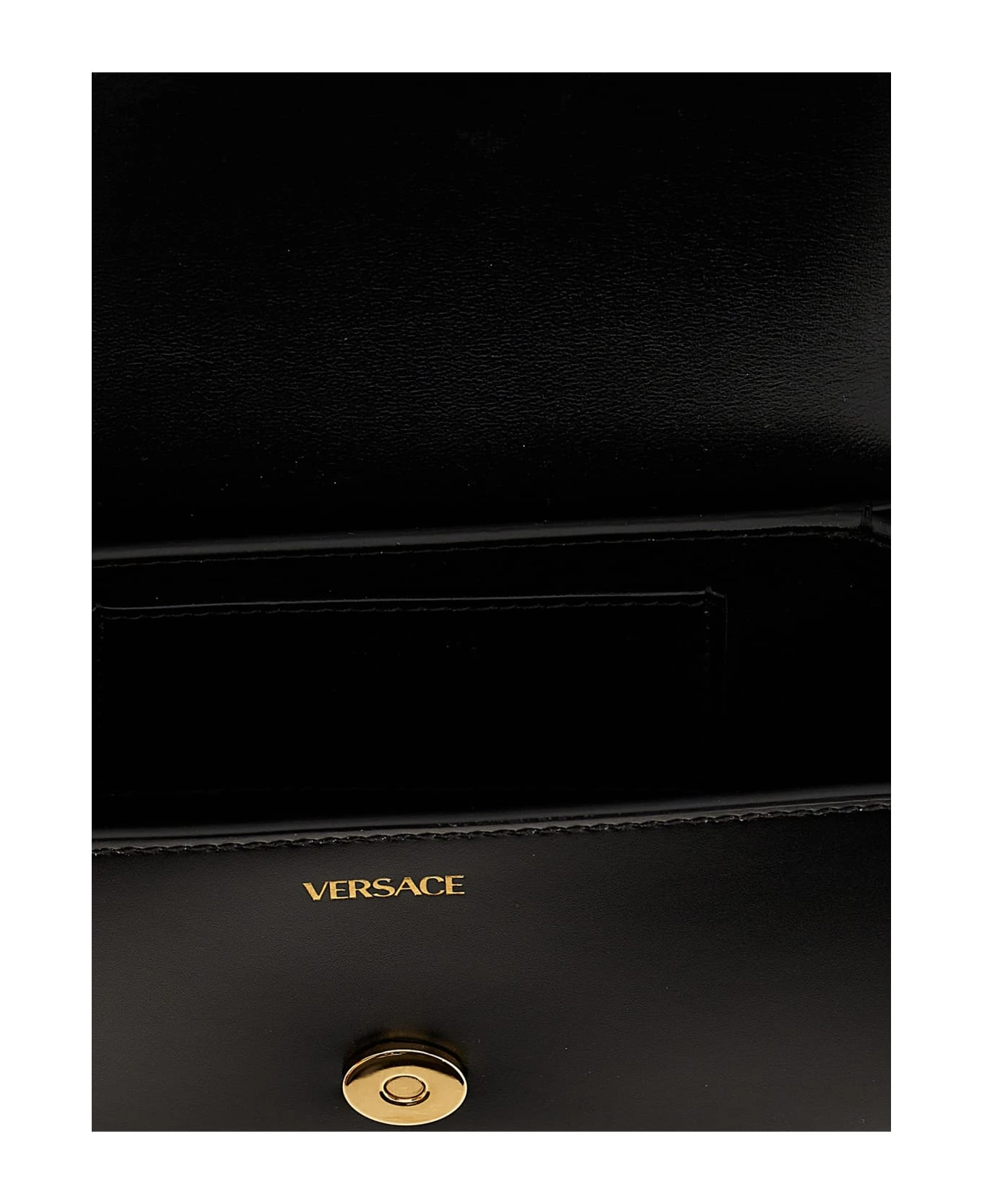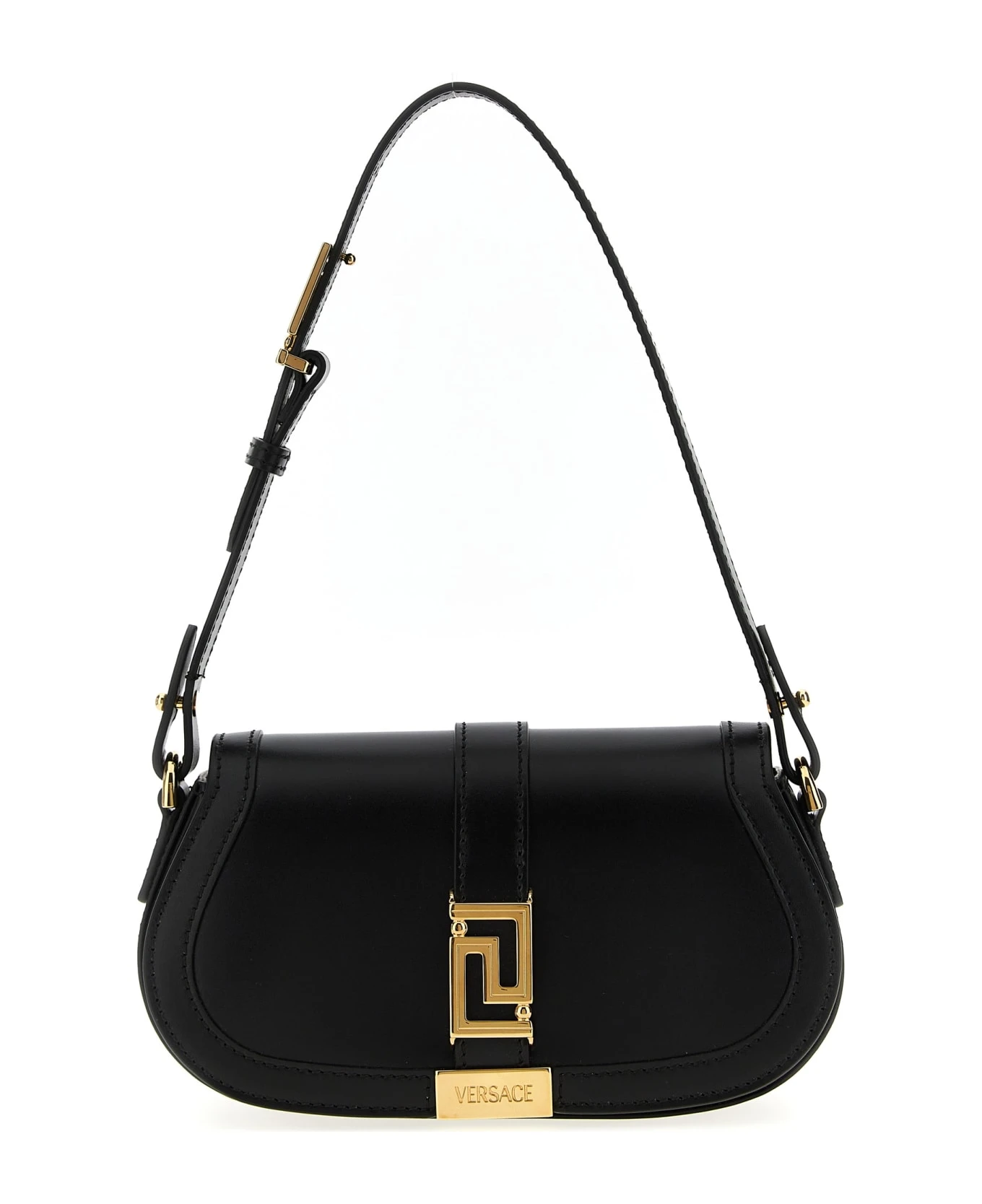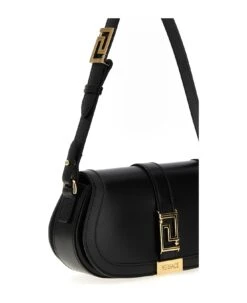 Mini Greca Goddess’ leather shoulder bag with metal details with Greca, adjustable and removable leather shoulder strap, a magnetic closure.