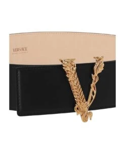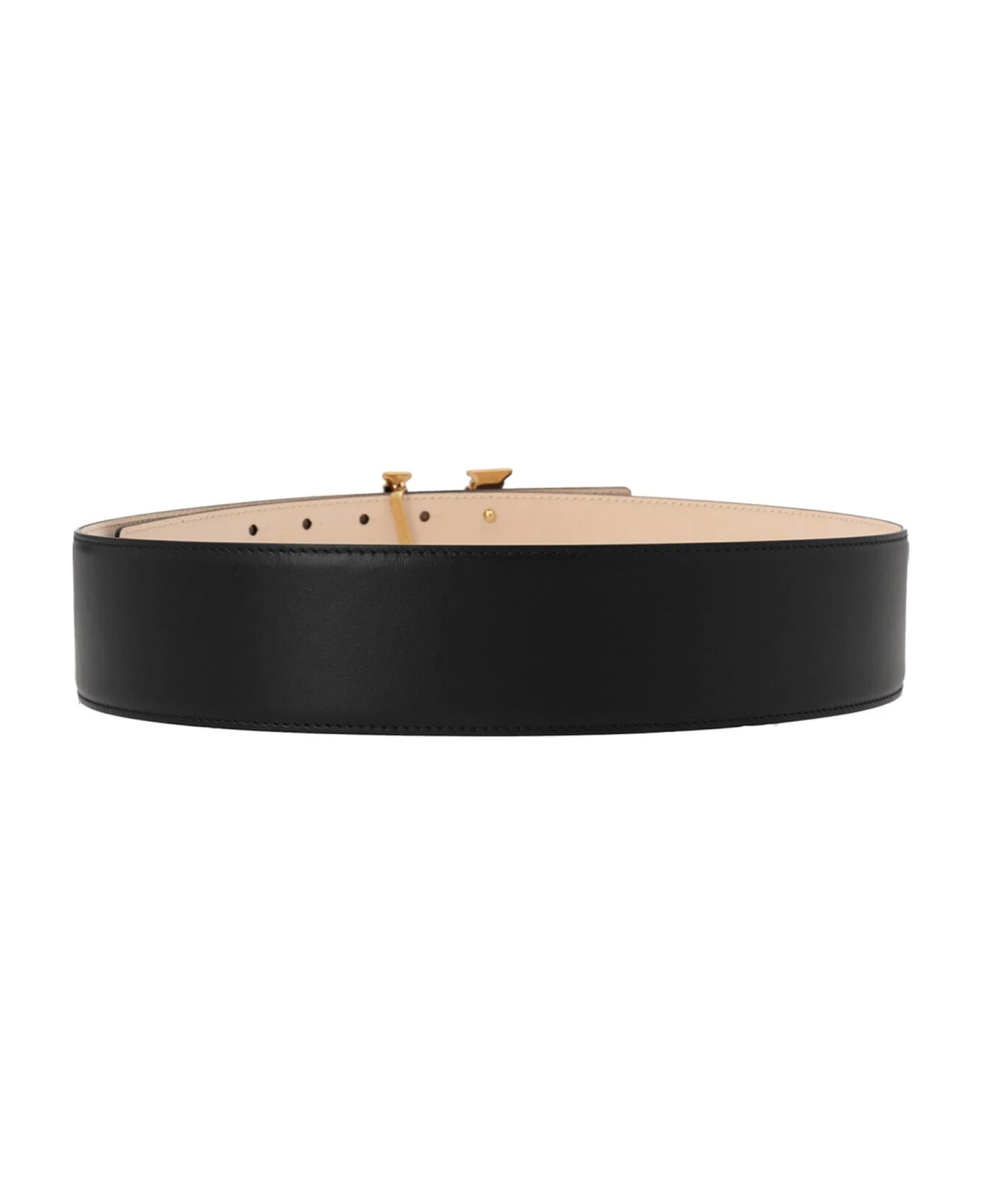 Leather belt featuring ‘V’ logo buckle.