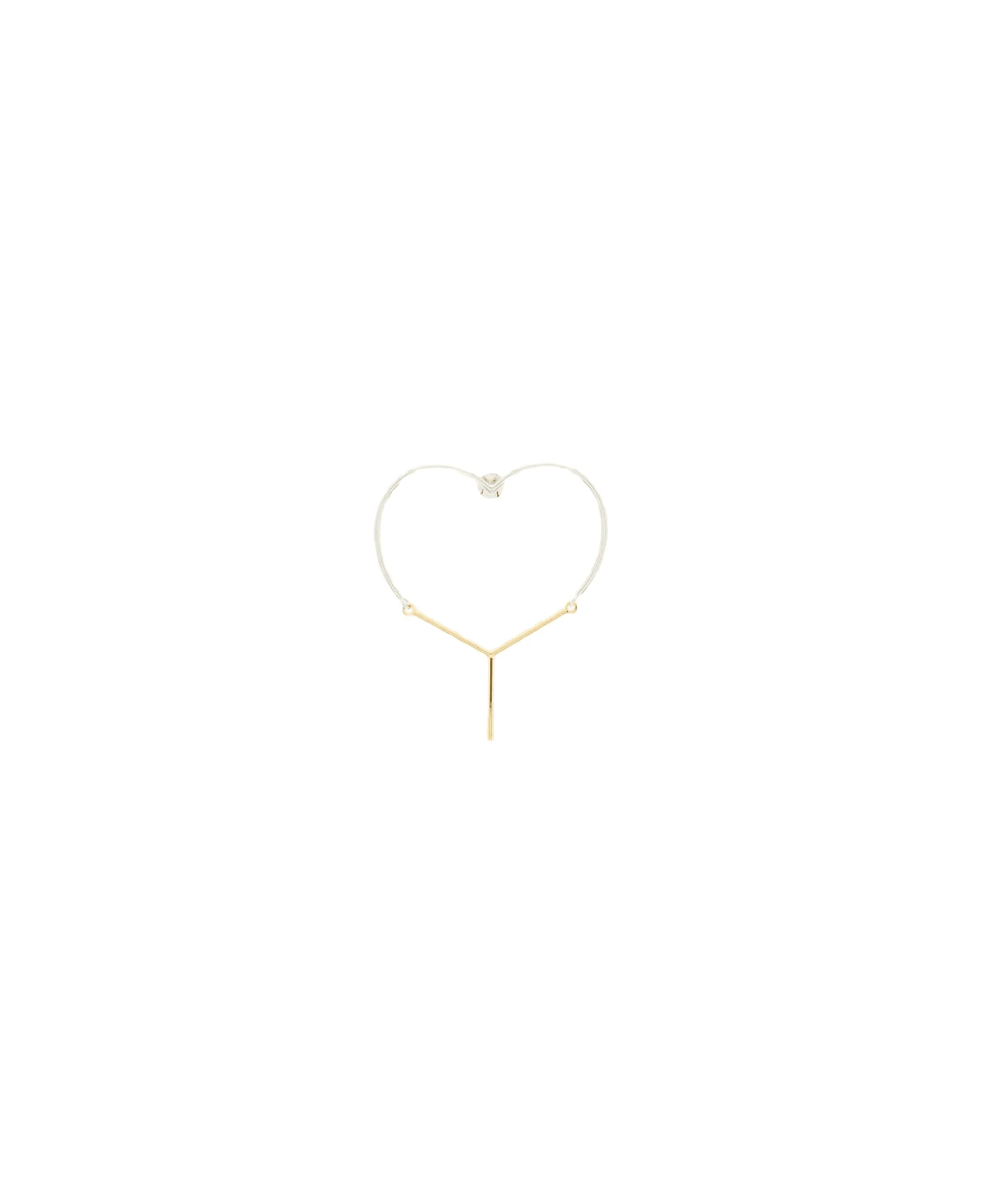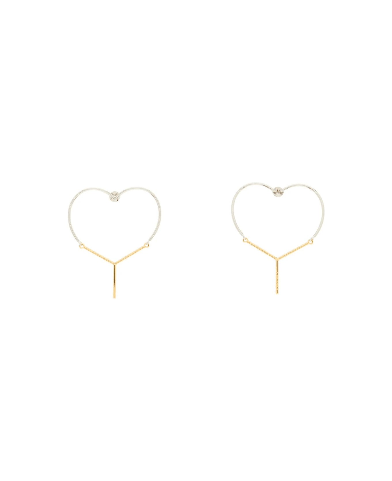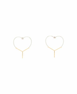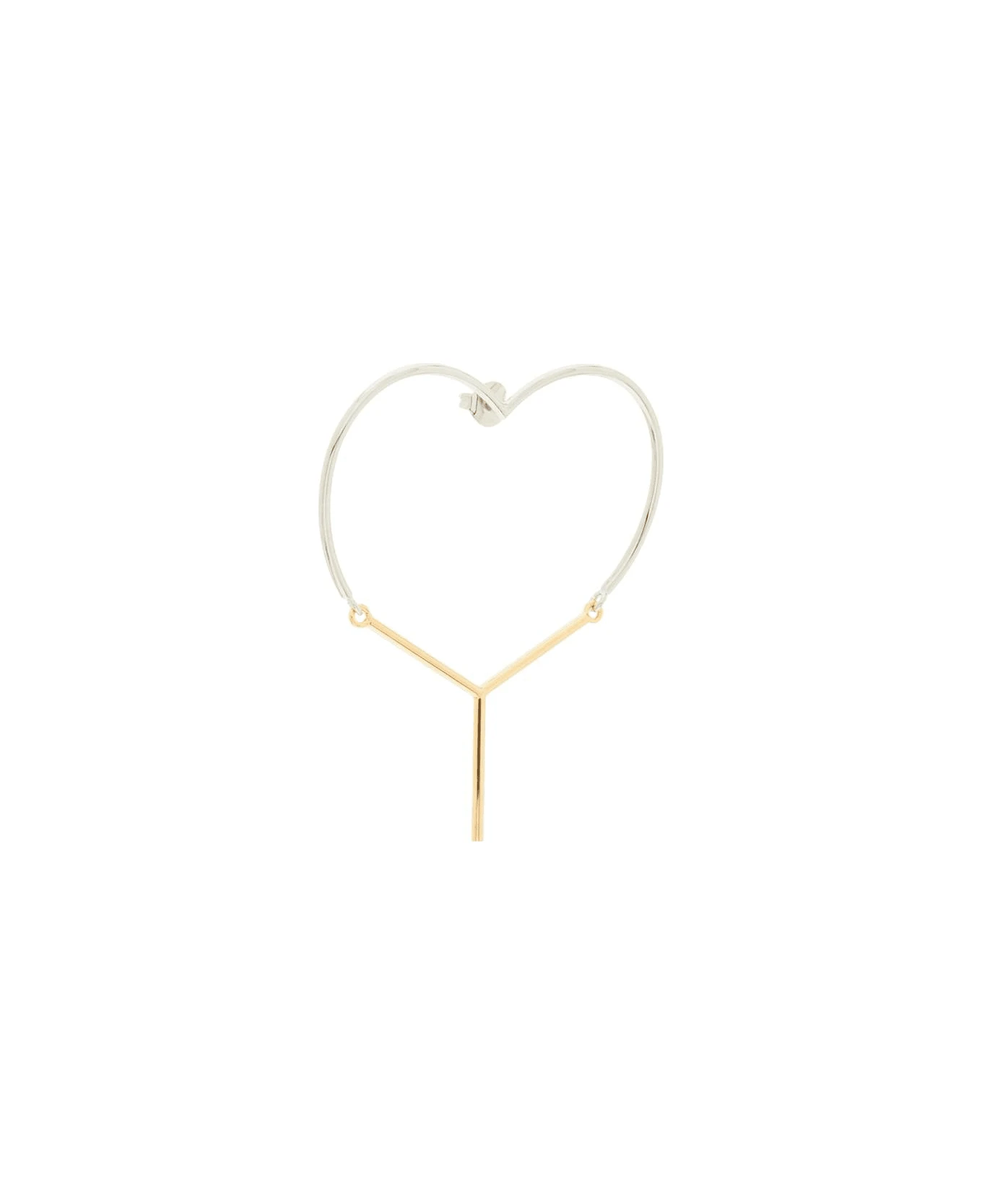 Brass earrings by Y/PROJECT characterized by half heart and half Y shape. Pin back closure.