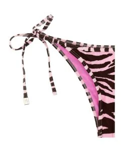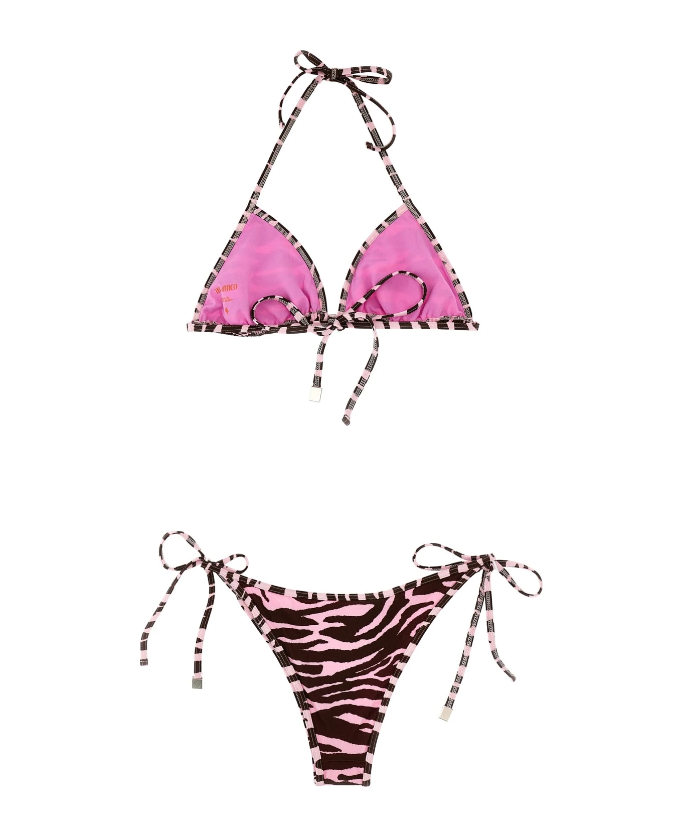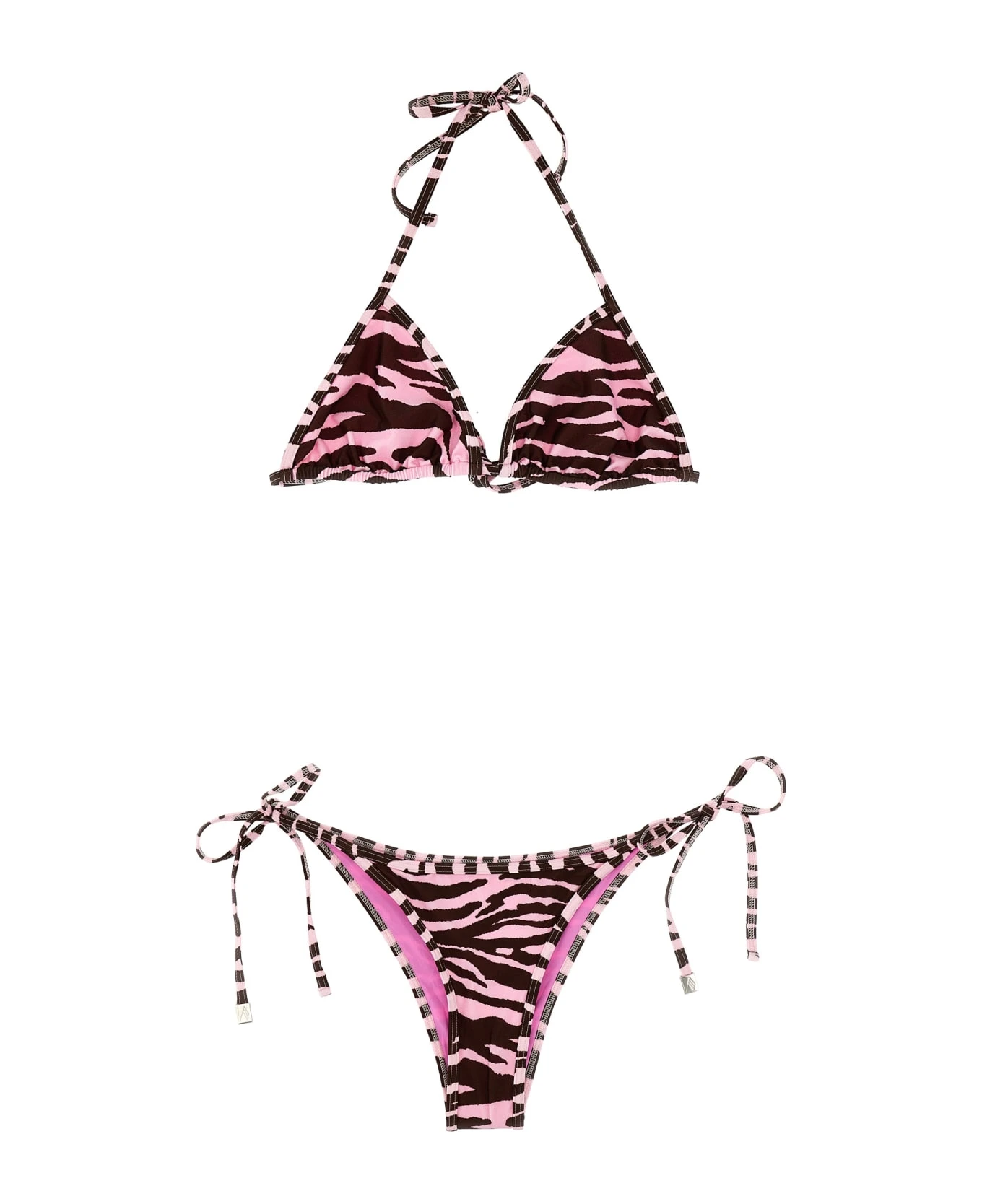 all-over zebra print lycra bikini with triangle top with lacing and regular briefs with lacing.